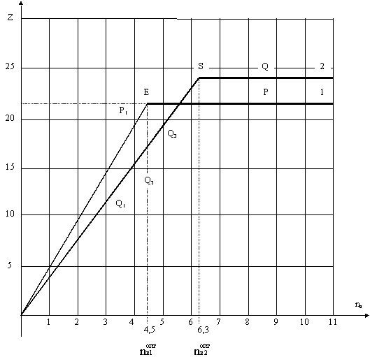 Графическая зависимость производительности системы перевозок от числа транспортных средств в случае модели с одним терминалом показана на рис. 8.5.