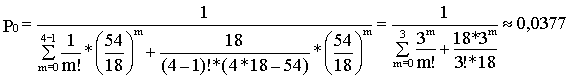 Теперь вычислим вероятность того, что в момент прибытия очередного автомобиля под погрузку все комплексные бригады заняты (формула 8.20):
