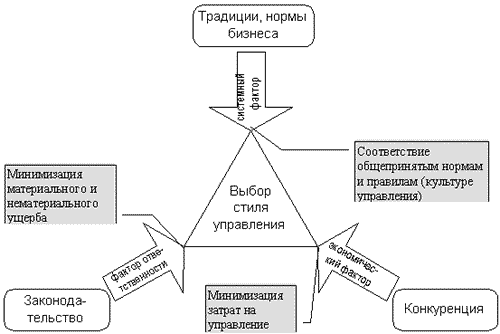 экономический, связанный с обеспечением конкурентоспособности (для предприятия) или экономической безопасности (для государства); этот фактор заставляет сокращать затраты на управление и выбирать наиболее экономически целесообразную альтернативу;