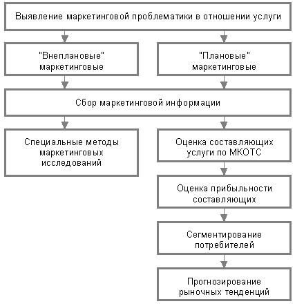 Маркетинговое исследование услуги или ее рыночного окружения представляет собой систематические мероприятия по получению оперативной информации в отношении данных, описывающих текущее или перспективное (прогнозное) состояние самой услуги или ее маркетингового окружения, а также анализ и отражение данных в форме, необходимой для решения стратегических и тактических задач, стоящих перед фирмой.