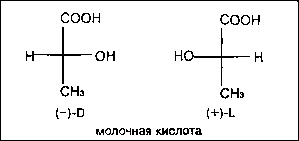 В структурном плане для этих соединений характерно появление молекулярного асимметрического центра, что позволяет присутствовать им в природных источниках в трех формах- -изомера, -изомера и -изомера. К примеру, молочная кислота образуется при молочнокислом брожении лактозы в виде рацемической смеси, тогда как в животном организме в результате гликолиза образуется -О-молочная кислота, которая накапливается в мышцах при интенсивной работе, вызывая характерную мышечную боль.