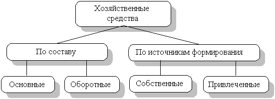 Экономическое содержание и структура хозяйственных средств. Хозяйственные средства, необходимые для осуществления предпринимательской деятельности, можно классифицировать по составу и по источникам их формирования (рис.2).
