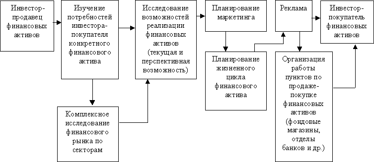 Финансовый маркетинг можно представить как системный подход инвесторов продавцов к управлению реализацией финансовых активов (денег, ценных бумаг, драгоценных металлов и камней) и системный подход инвесторов – покупателей к управлению накоплением финансовых активов.