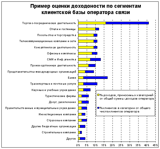 Анализ структуры собственной клиентской базы и клиентов конкурирующих компаний выявил необходимость смены сбытовой политики на различных сегментах потребительского рынка. Для многих результат стал неожиданностью. Была выявлена высокая доходность, а следовательно, привлекательность ряда сегментов, которые традиционно причислялись к низкодоходным и неинтересным с коммерческой точки зрения. По результатам исследования составлен портрет типичного потребителя услуг компании. Для данной категории потребителей разработаны и проведены широкомасштабные маркетинговые и рекламные акции, обеспечившие стабильное положение компании на рынке.