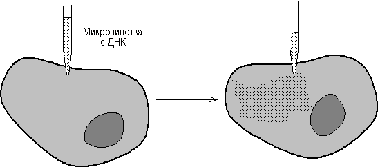 Микроинъекцию клонированных генов производят в один или оба пронуклеуса только что оплодотворенной яйцеклетки мыши. Чаще выбирают мужской пронуклеус, привнесенный сперматозоидом, так как его размеры больше. После инъекции яйцеклетку немедленно имплантируют в яйцевод приемной матери, или дают возможность развиваться в культуре до стадии бластоцисты, после чего имплантируют в матку.