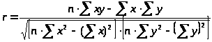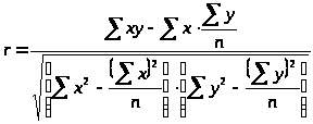 Мы будем проводить расчет по итоговым значениям исходных переменных, линейный коэффициент корреляции, который можно вычислить по формуле: