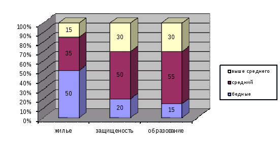 35% - нуждаются относительно (студенческие семьи с одним ребенком, пенсионеры, неполные семьи);