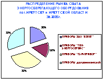 ●На сегодняшний момент размеры рынка энергосберегающего оборудования на территории Иркутской области охватывают до 50 % от возможного объема. Темпы роста – высокие, так как с 1-го января 2006 г. принят новый жилищный кодекс, в связи с чем каждый потребитель тепла и воды задумывается о реально расходуемых ресурсах для экономии затрат на их оплату. Также на темп роста влияет уваливающееся количество строящегося жилья (национальный проект «Доступное жилье»). В связи со всем вышеперечисленным – у отрасли энергосберегающего оборудования – высокий потенциал.