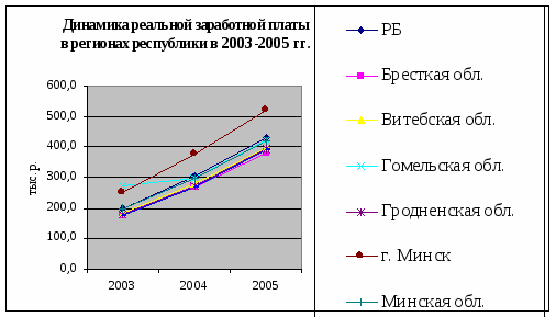 Можно отметить, что в г. Минске реальная заработная плата значительно выше, чем в остальных регионах. И это правомерно, т. к. в столице сосредоточена значительная часть банков, коммерческих структур, учреждений высших школ и научных организаций, крупных промышленных предприятий, органов государственного управления. Квалификация работников этих предприятий обуславливает заметно более высокий уровень оплаты труда, что и сказывается на коэффициенте межрегиональной дифференциации.