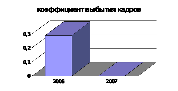 4. Коэффициент оборота кадров показывает нам, какая доля кадров обновляется в течение года. В кафе Гора в первый год эта доля составила более половины персонала, во второй около 30%. Это показывает нам то, что рабочие очень часто в первый год менялись, во второй год уже меньше – треть, а значит при этом качество обслуживания страдало, так как привыкание к новому месту работы проходит не очень быстро. 2006год был самым не постоянным из всех лет работы, следовательно, в этот год качество обслуживания было не лучшее.