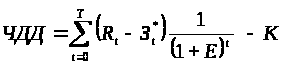 Прирост стоимости капитала предприятия за счет инвестиций в подготовку персонала можно охарактеризовать показателем чистого дисконтированного дохода (ЧДД), определяемого как сумма эффектов за Безрасчетный период. ЧДД от вложений в подготовку персонала определяется как сумма эффектов, полученных от вложений в подготовку персонала за весь расчетный период и приведенных к начальному шагу. Под расчетным периодом мы будем понимать количество трудовых лет работы после прохождения обучения,