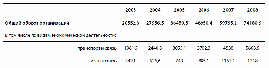 Таблица 2. Оборот организаций по видам экономической деятельности (в фактически действовавших ценах, млрд руб.) Источник: Федеральная служба государственной статистики, Банк России.