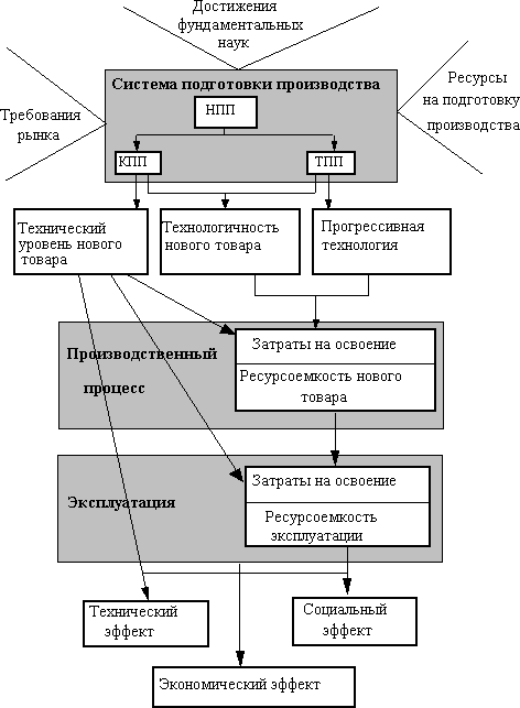 Рис. 1. Влияние системы подготовки производства на формирование конечного эффекта разработки и использования нового товара