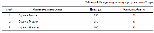 Исходные данные для построения позиционной карты конкурирующих услуг приведены в табл. 2–4.