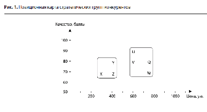 Построенная позиционная карта стратегических групп конкурентов приведена на рис. 1.