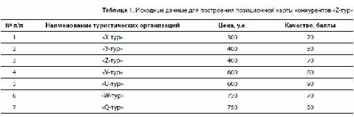 целесообразность построения позиционной карты стратегических конкурентов для выявления ближайших конкурирующих организаций и услуг в области туризма;