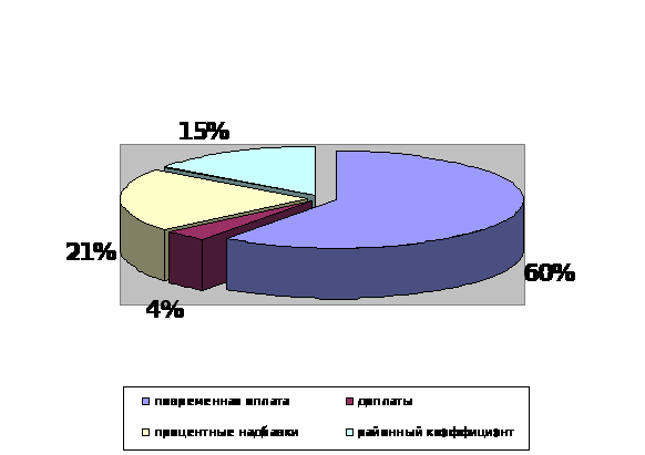 Диаграмма состава и структуры фонда заработной платы по статьям затрат за 2004год