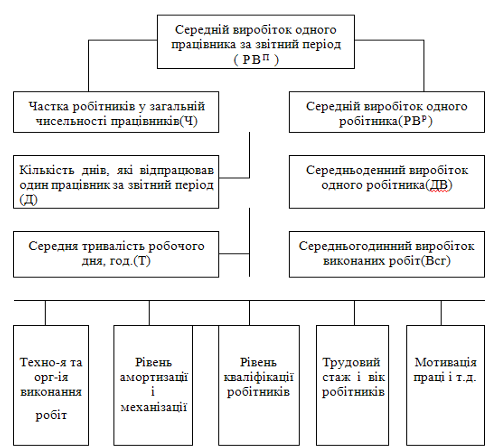 Виробіток робітника, (тис.грн.): за звітний період (РВР); середньоденний (ДВ); середньогодинний, грн.(ГВ) |