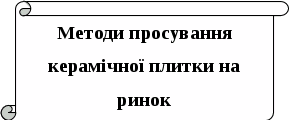 3. Стратегія ціноутворення. Підприємство ТОВ «Кераміка» використовує стратегія ціноутворення - стратегія цін, встановлених нижче, ніж у більшості фірм. Ця стратегія оптимальна на даний момент, тому що підприємство ще не досить добре закріпилося на ринку. Тому, якість керамічної плитки буде висока, але ціна значно нижча, ніж у конкурентів. Дана стратегія відповідає цілям, які підприємству ТОВ «Кераміка» необхідно досягнути.