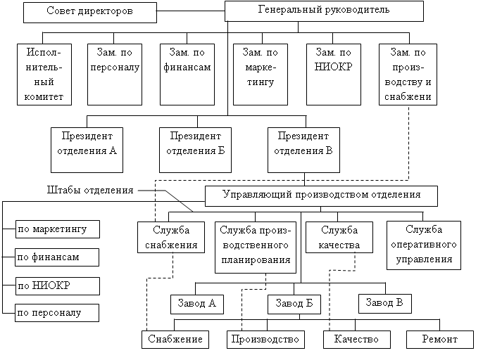 в отделениях, как правило, сохраняется линейная или линейно - штабная структура со всеми их недостатками.