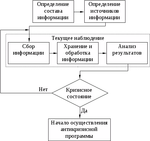 методика мониторинга: позволяет выявить основные и второстепенные параметры, на основе измерения которых может быть диагностирован уровень кризиса и предприняты меры по недопущению несостоятельности;