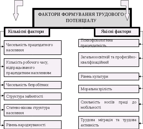 Схема 1.1– Фактори, що визначають формування трудового потенціалу