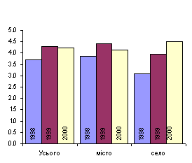 Однак в 2000р. рівень безробіття в сільській місцевості перевищив середнє значення по Україні. Це було зумовлено, в першу чергу, реформуванням аграрного сектора: в цілому по країні в цьому році вивільнення зросло на 6%, а в сільському господарстві – більше ніж в 3 рази. Незважаючи на це, лише 12-17% незайнятих громадян проживає на селі [7].