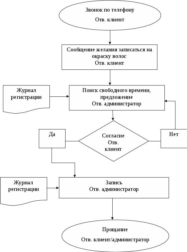 В салоне-парикмахерской «Роза ветров» при оказании услуги по окраске волос существуют следующие процессы, связанные с потребителями: