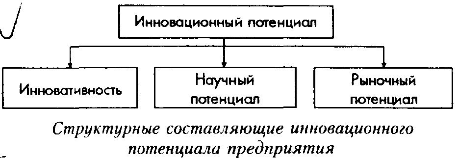 Таким образом, можно предложить следующий вариант определения термина «инновационный потенциал», отражающий его структурные составляющие. Инновационный потенциал — это характеристика предприятия, выявляемая в результате инновационного аудита, отражающая обеспеченность предприятия научными кадрами и высококвалифицированными специалистами (научный потенциал предприятия), восприимчивость предприятия к инновациям из вне и возможность реализации новшеств в производстве или организационной структуре (инновативность), рыночный потенциал которых удовлетворяет собственника предприятия.