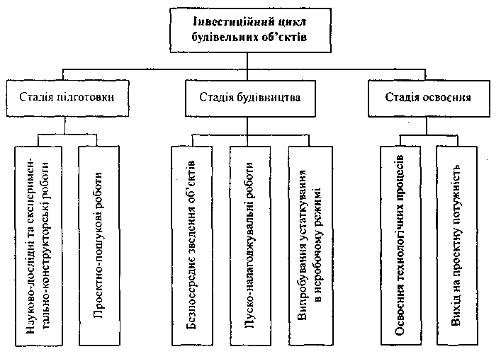 Рис. 4.1 Стадії інвестиційного циклу будівельних об'єктів
