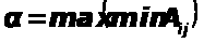 Нижняя цена игры (которая принята обозначать ) рассчитывается путем определения минимального значения A>ij> по каждой строке платежной матрицы (стратегии игрока Y) и выбора из них максимального значения, т.е.: