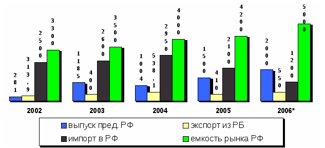 Основными рынками сбыта продукции являются рынки Республики Беларусь и Российской Федерации. Наиболее значительным внешним рынком продукции РУПП «Витязь» является рынок РФ.