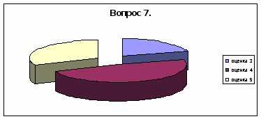 На этот вопрос 38 опрашиваемых поставили оценку 5, 23 – 4, и еще 2 поставили 3. Почти однозначно все работники признали, что руководитель относится к своей работе крайне ответственно, продумывая каждый последующий шаг. Это позволяет сделать вывод, что руководитель относится к категории общих руководителей.