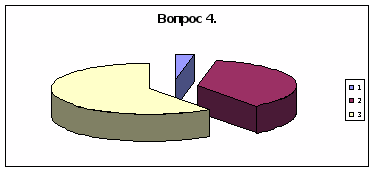 На поставленный вопрос 43 человека отметили 4, 8 отметили 5, и еще 12 отметили 3. Ниже приведена диаграмма с полученными результатами. Из вопроса следует, что большинство работников предприятия оценивают своего руководителя, как ориентирующегося в решаемых проблемах, знающего почти все подразделения, которые уполномочены в решении того или иного вопроса.