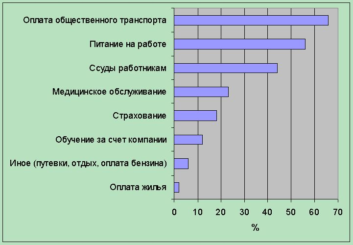 Натуральные выплаты: оплата жилища; оплата угля, электричества, газа, питания, одежды; продажа работникам предприятия по сниженной стоимости производимой им продукции.