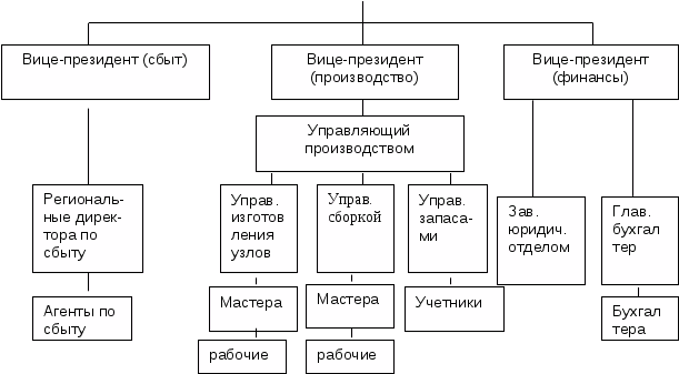 Мелкие и средние фирмы могут создаваться и как корпорации (акционерные общества). Самая простая управленческая структура включает здесь президента, вице-президента, специалиста по сбыту. Общее руководство в небольшой корпорации осуществляет совет директоров в составе, как правило, пяти человек, в том числе трех внешних директоров (ими являются банкиры, управляющие крупных фирм, юристы, которые могут хотя бы частично компенсировать недостаток опыта управляющего такой корпорации, помочь решать трудные проблемы).