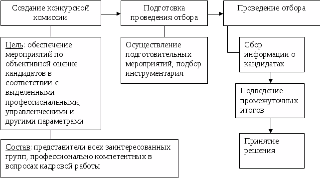Итак, на основе вышеперечисленных процедур выстраивается методика конкурсного отбора персонала на занятие вакантной должности при организации конкурса в форме отбора (рис.2.3)