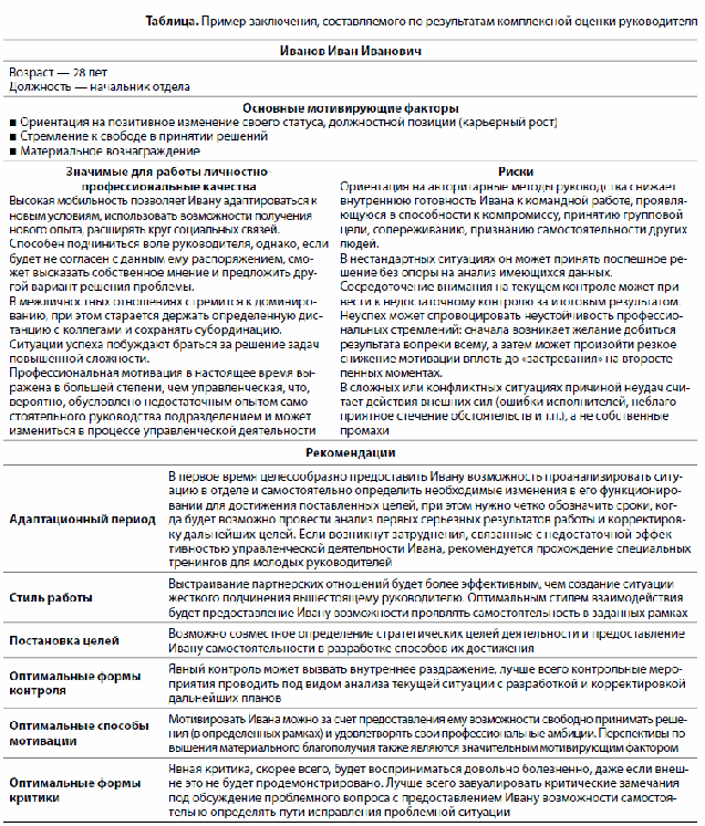 Приведем пример такого заключения. Форма документа была разработана специалистами по персоналу одной из отечественных компаний, но наш опыт показал ее эффективность в несколько модифицированном варианте, который представлен в таблице.