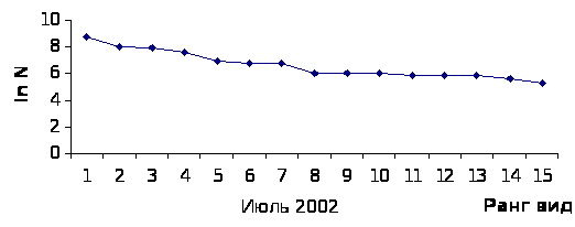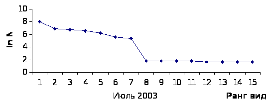 Рисунок - Ранговое распределение численности видов зоопланктона р. Припять