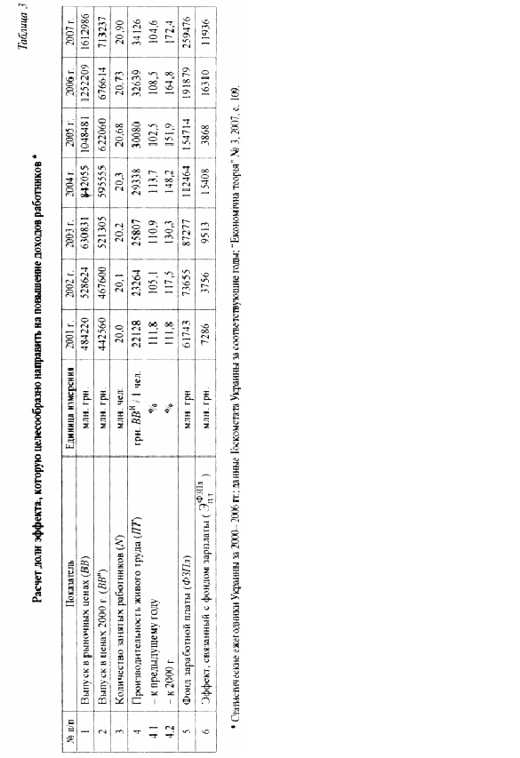 Мы провели соответствующие расчеты по экономическим показателям Украины за 2001-2007 гг. Пропорции и темпы изменения анализируемых показателей дают основание для выводов о тех результатах, которых можно было бы ожидать от внедрения тех или иных предложений в 2001 г. Фактический фонд заработной платы рассматривается как сформировавшийся главным образом под влиянием рыночного спроса и предложения рабочей силы, с учетом выплат за текущие результаты труда.