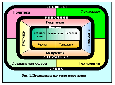 Рынок одновременно представляет собой, с одной стороны, надсистему для компании, а, с другой стороны, открытую систему для внешнего окружения. Сама компания тоже одновременно представляет собой, с одной стороны, открытую систему, входящую в рыночную среду, а, с другой стороны, надсистему по отношению к входящим в нее подразделениям, собственникам, менеджерам, персоналу.