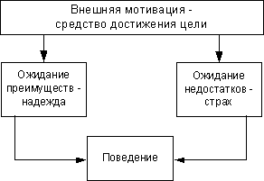 Внешняя мотивация основана на побуждениях, которые вызываются воздействием субъекта из вне (оплата за работу, правила и распорядок и пр.)