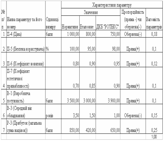 проаналізовані з застосуванням експертних методів цінові та нецінові характеристики продукції ТОВ “ДКБ „РОТЕКС” у порівнянні з основними конкурентами;
