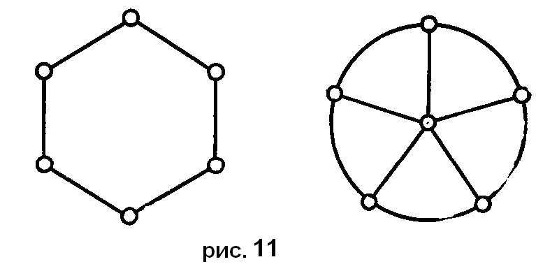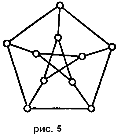 Регулярные графы. Граф, у которого все вершины имеют одну и ту же степень, называется регулярным графом. Если степень каждой вершины равна r, то граф называется регулярным степени r. Регулярные графы степени 3, называемые также кубическими (или трехвалентными) графами (см., например, рис. 2 и 4). Другим известным примером кубического графа является так называемый граф Петерсена, показанный на рис. 5. Отметим, что каждый вполне несвязный граф является регулярным степени 0, а каждый полный граф К>n> – регулярным степени n – 1.