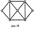 Связный граф G называется эйлеровым, если существует замкнутая цепь, проходящая через каждое его ребро; такая цепь называется эйлеровой цепью. Отметим, что в этом определении требуется, чтобы каждое ребро проходилось только один раз. Если снять ограничение на замкнутость цепи, то граф называется полуэйлеровым; при этом каждый эйлеров граф будет полуэйлеровым. На рис. 13,14,15 изображены соответственно не эйлеров, полуэилеров и эйлеров графы.