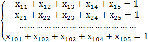 Для решения задачи введем в рассмотрение переменные x>ij> специального вида, каждая из которых будет принимать только два значения – 0 и 1, а именно: всякому назначению бригады на объект будет соответствовать единица, в противном – ноль.