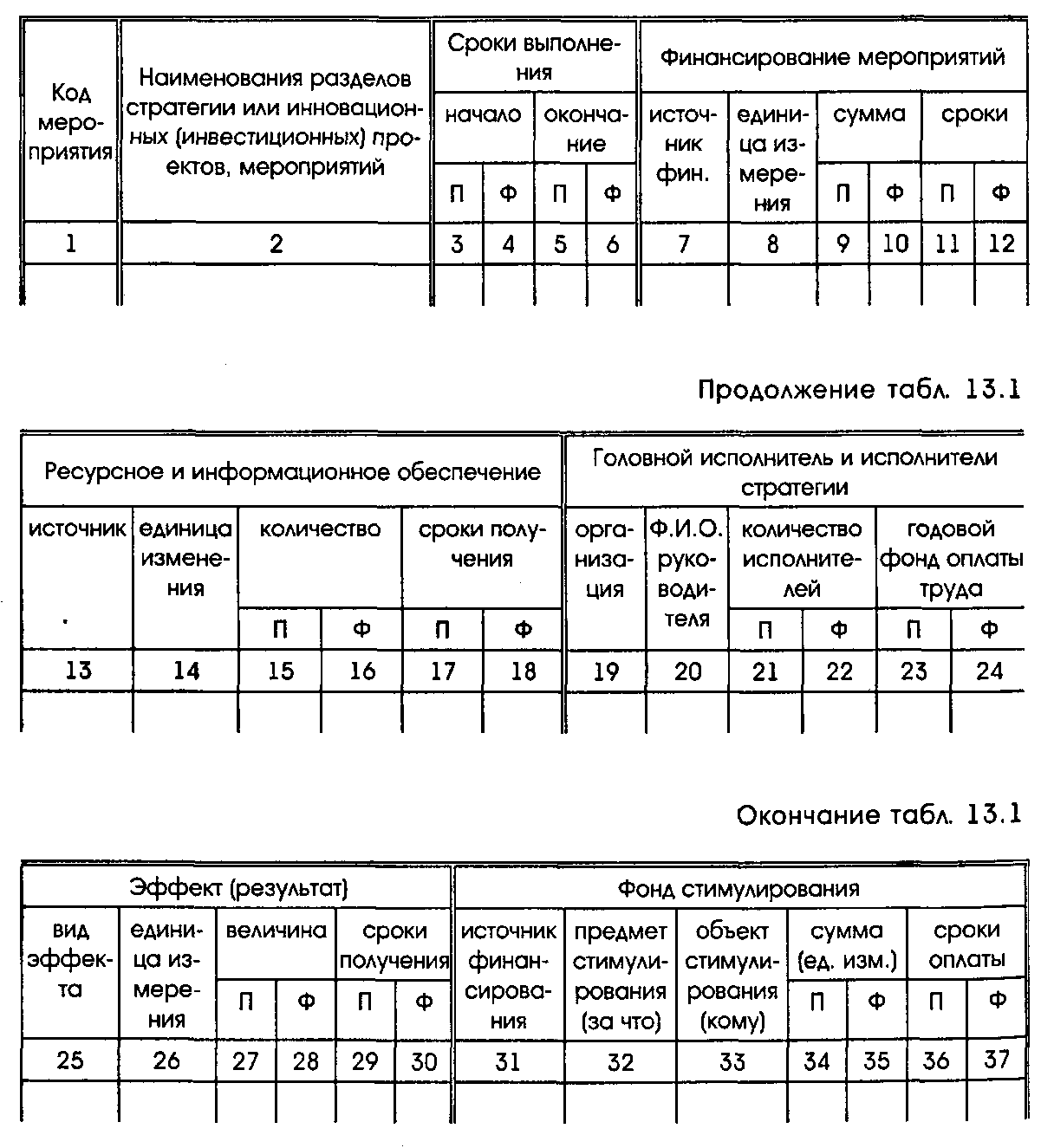 Таблица 1 составляется в двух вариантах. Сначала она заполняется по данным, приведенным в стратегии и ее конкретных разделах Показатели первого, наиболее оптимального с позиций стратегического маркетинга варианта "проталкиваются" в соответствующие стратегические планы, разрабатываемые плановым отделом организации. Безусловно, при разработке стратегии некоторые ее показатели придется уточнять, конкретизировать, состыковывать. Главная задача менеджера-координатора на этом этапе заключается в оказании помощи разработчикам стратегических планов в обеспечении конкурентоспособности организации и ее товаров. Таким образом, на этой стадии должна быть реализована концепция стратегического маркетинга.