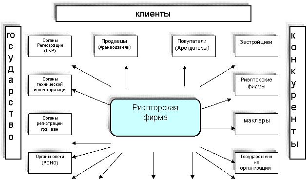 Современная наука управления выдвигает на первое место не внутренние факторы – рациональную организацию производства, снижения расходов, а проблему четкости и адаптации к переменчивым условиям внешней среды. Правительство, потребители, конкуренты – объекты постоянного внимания менеджмента, организации. На рисунке 5 представлена схема взаимодействия ООО «Оренбурггражданстрой-Риэлт» с внешней средой.