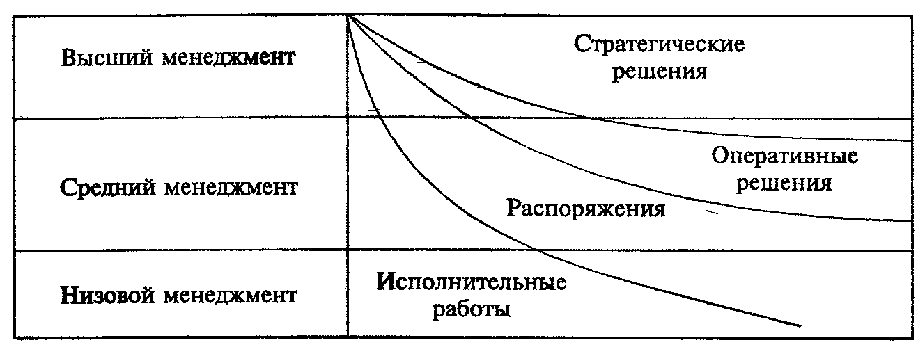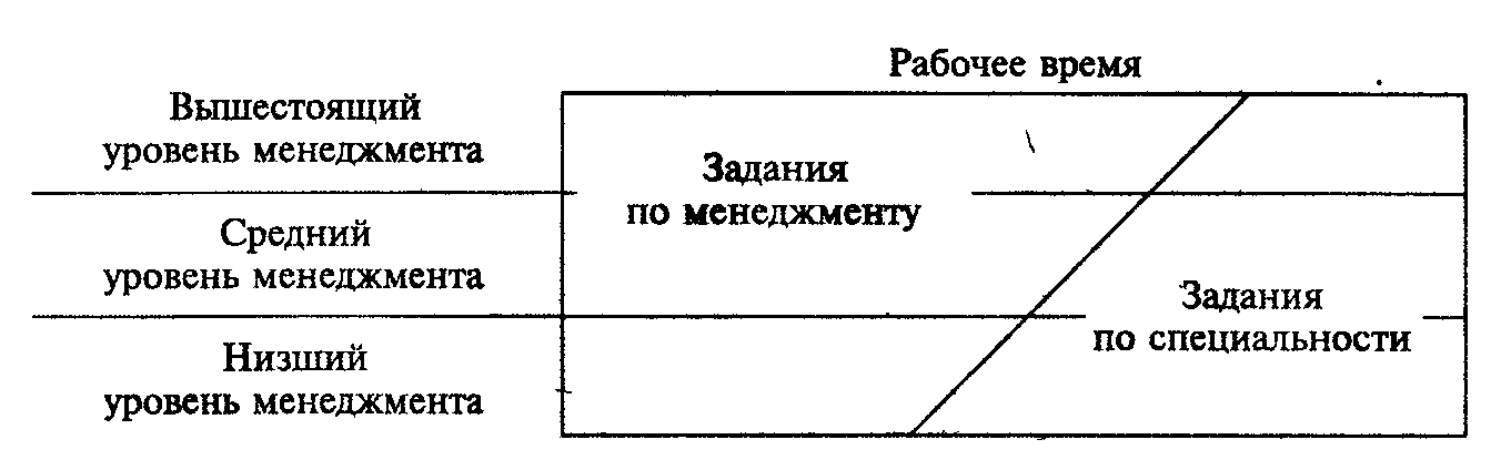 Данная организационная структура показывают, что на высшем уровне они занимает около 10%, на среднем — 50% и на низшем — около 70% общего времени менеджеров.