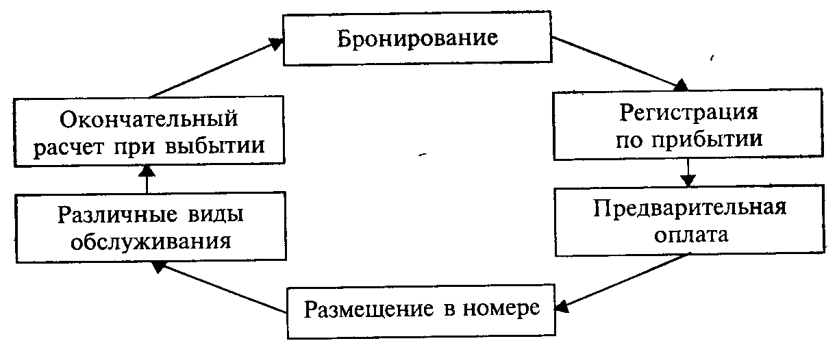 В независимости от факторов, влияющих на размер гостиничного предприятия и состав его структуры, существует понятие «гостевого (или технологического) цикла», который определяет минимальный набор служб гостиницы, необходимых для производства и реализации качественного гостиничного продукта.